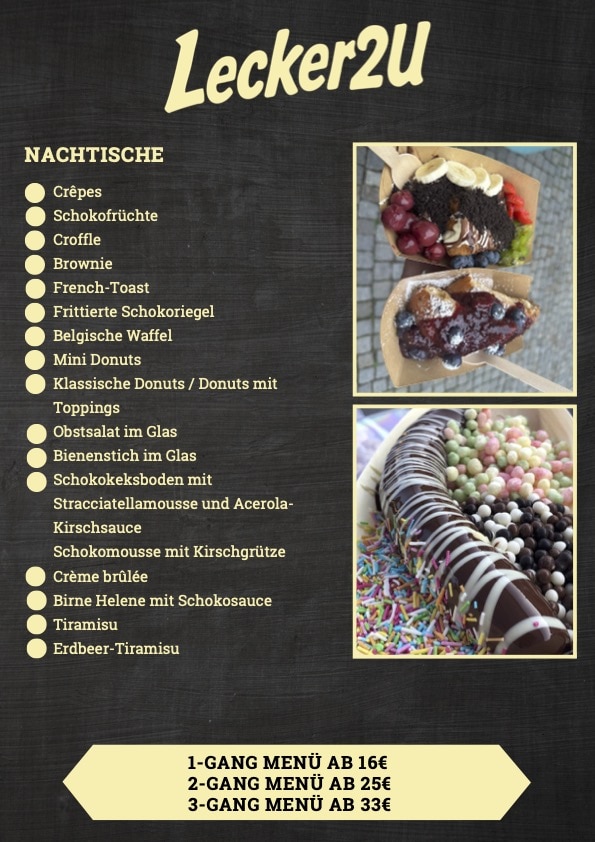 Unsere Philosophie ist einfach: ehrliches, leckeres Essen, das glücklich macht. Wir legen großen Wert auf frische und hochwertige Zutaten und achten darauf, dass Geschmack, Frische und Präsentation perfekt zusammenpassen. Bei Lecker2U soll jeder Bissen ein kleines Geschmackserlebnis sein.